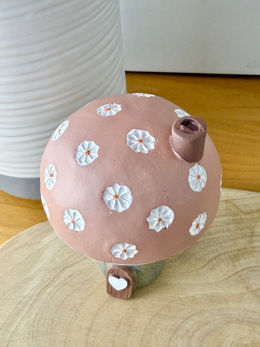 Pink daisy mushroom house