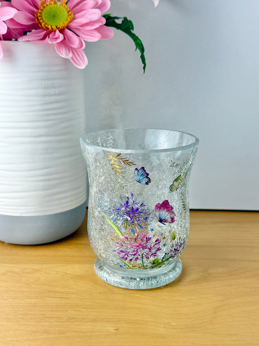 Floral Butterfly Hurricane Glass Vase - small