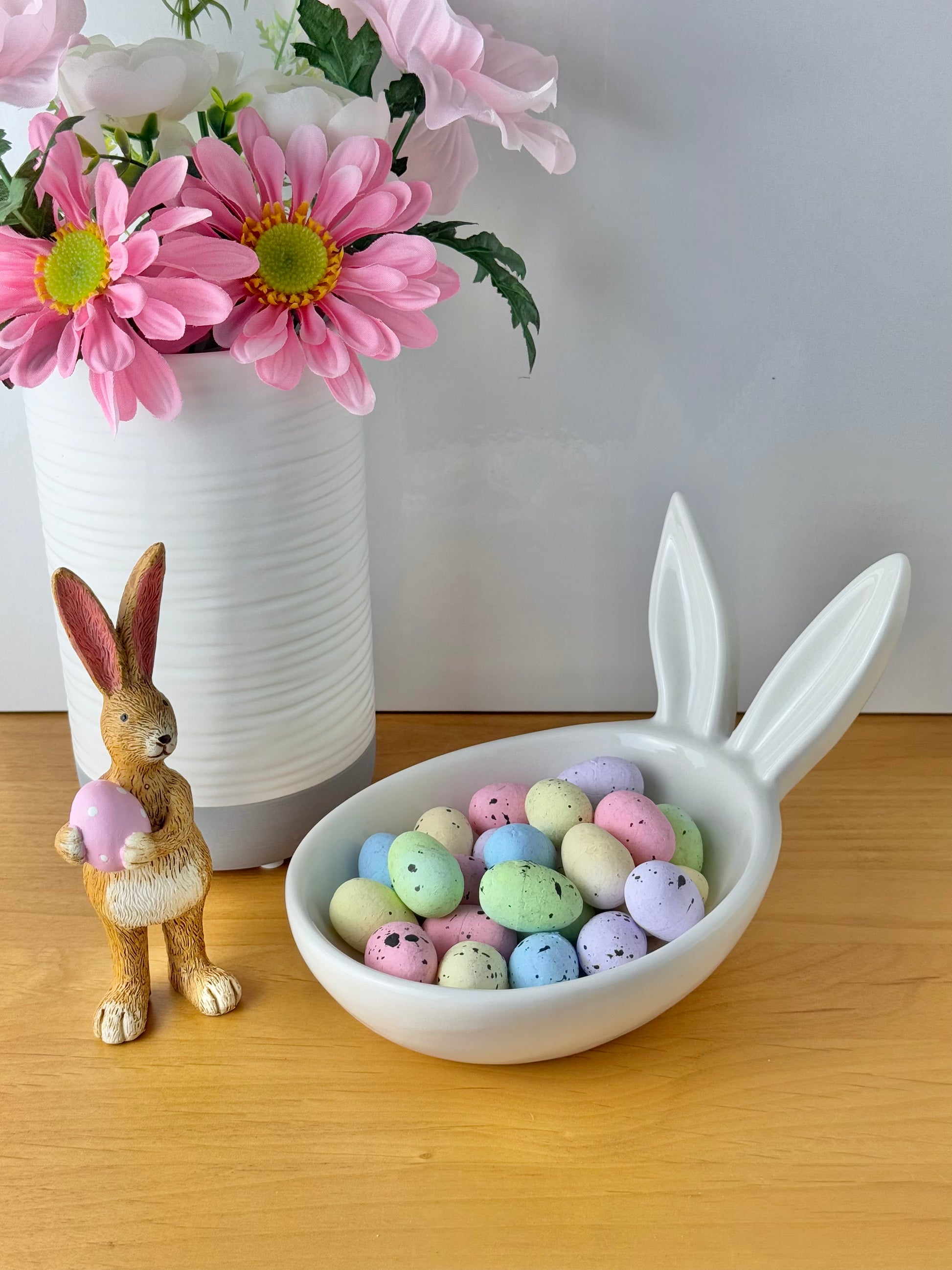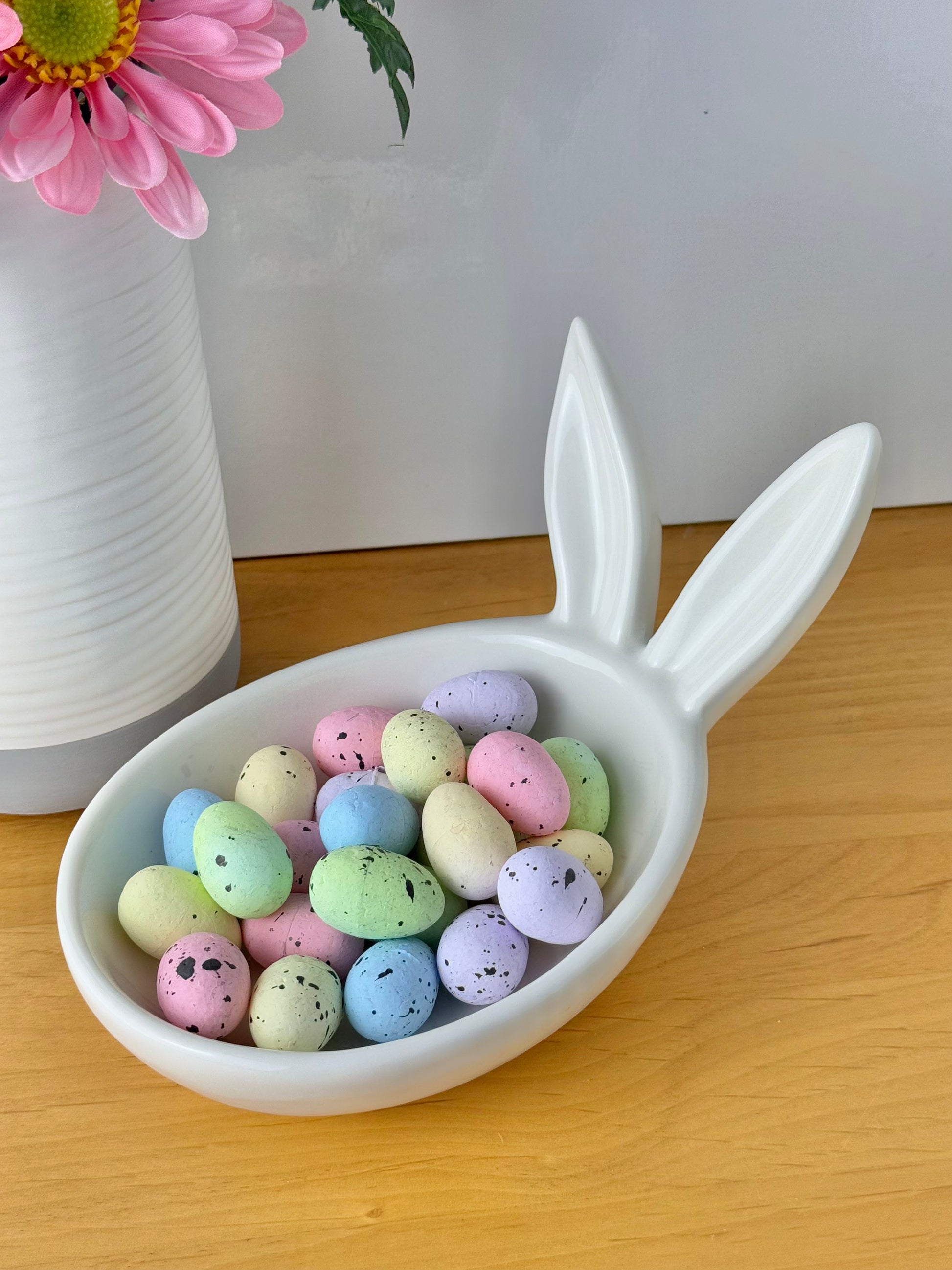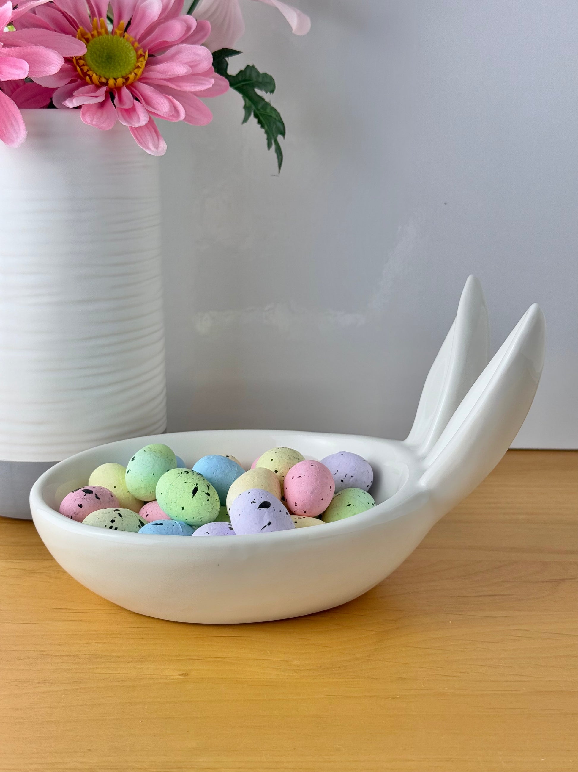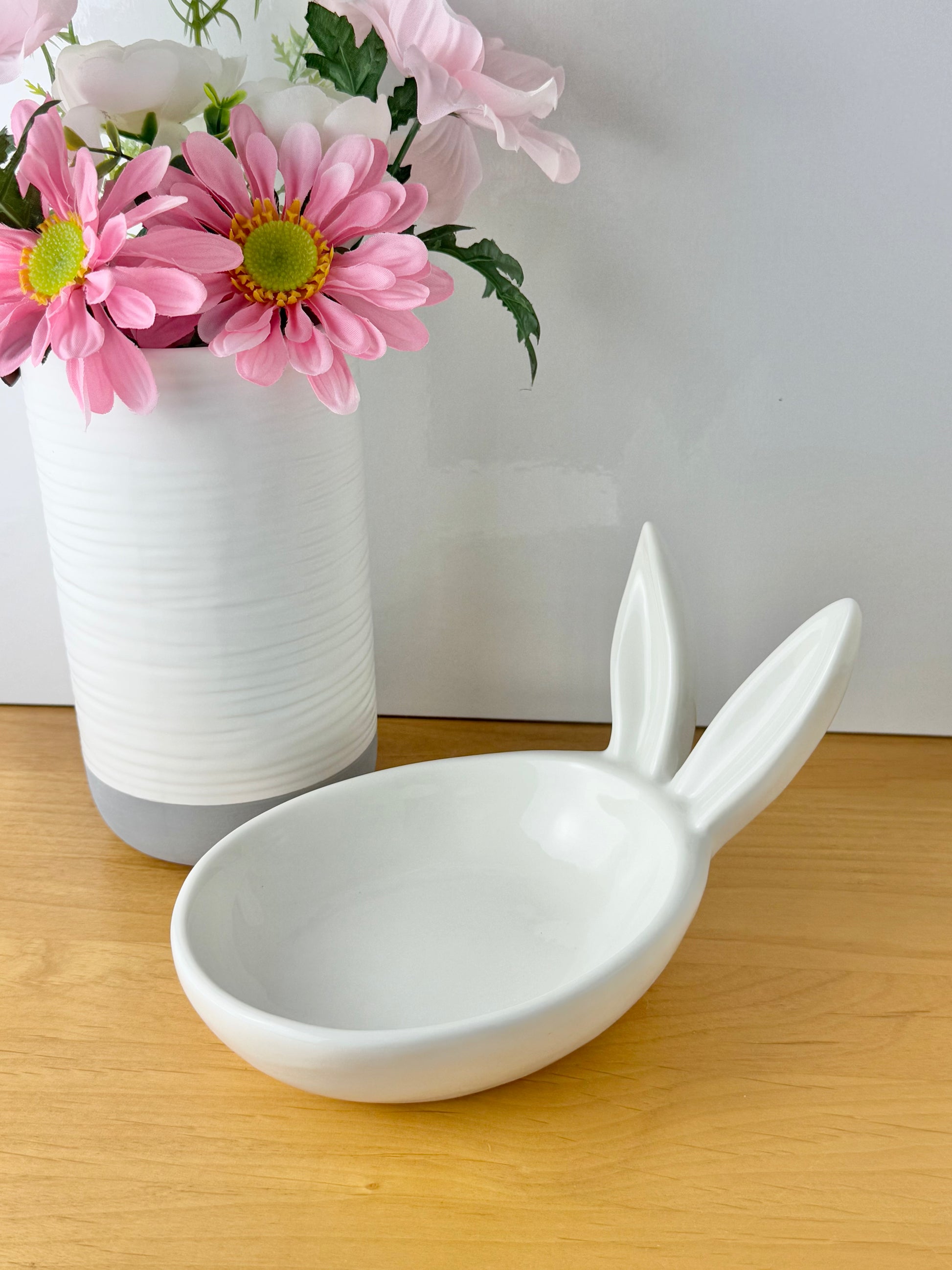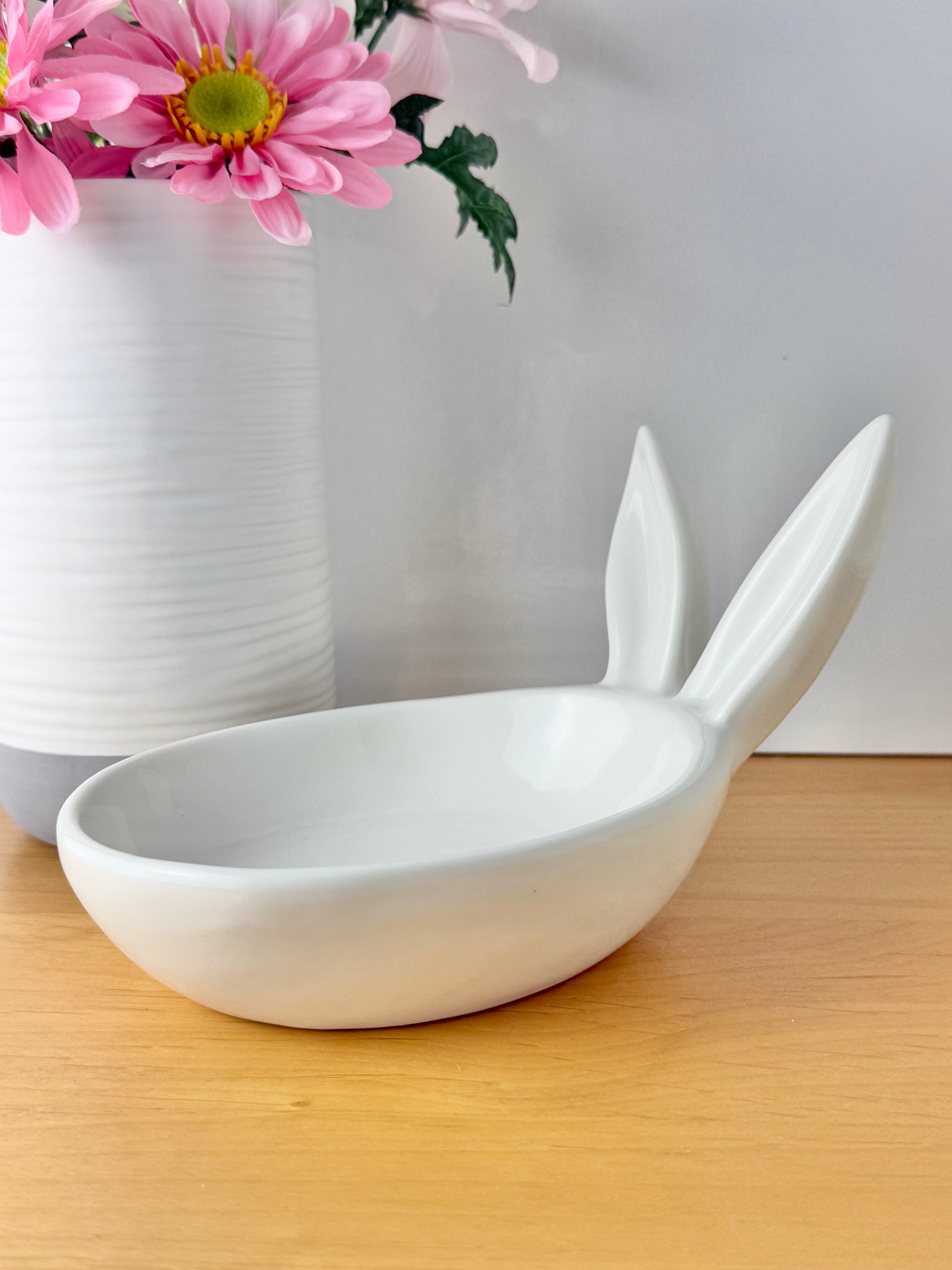 A chic dish with bunny ears. Perfect for presenting seasonal treats and for storying small items.