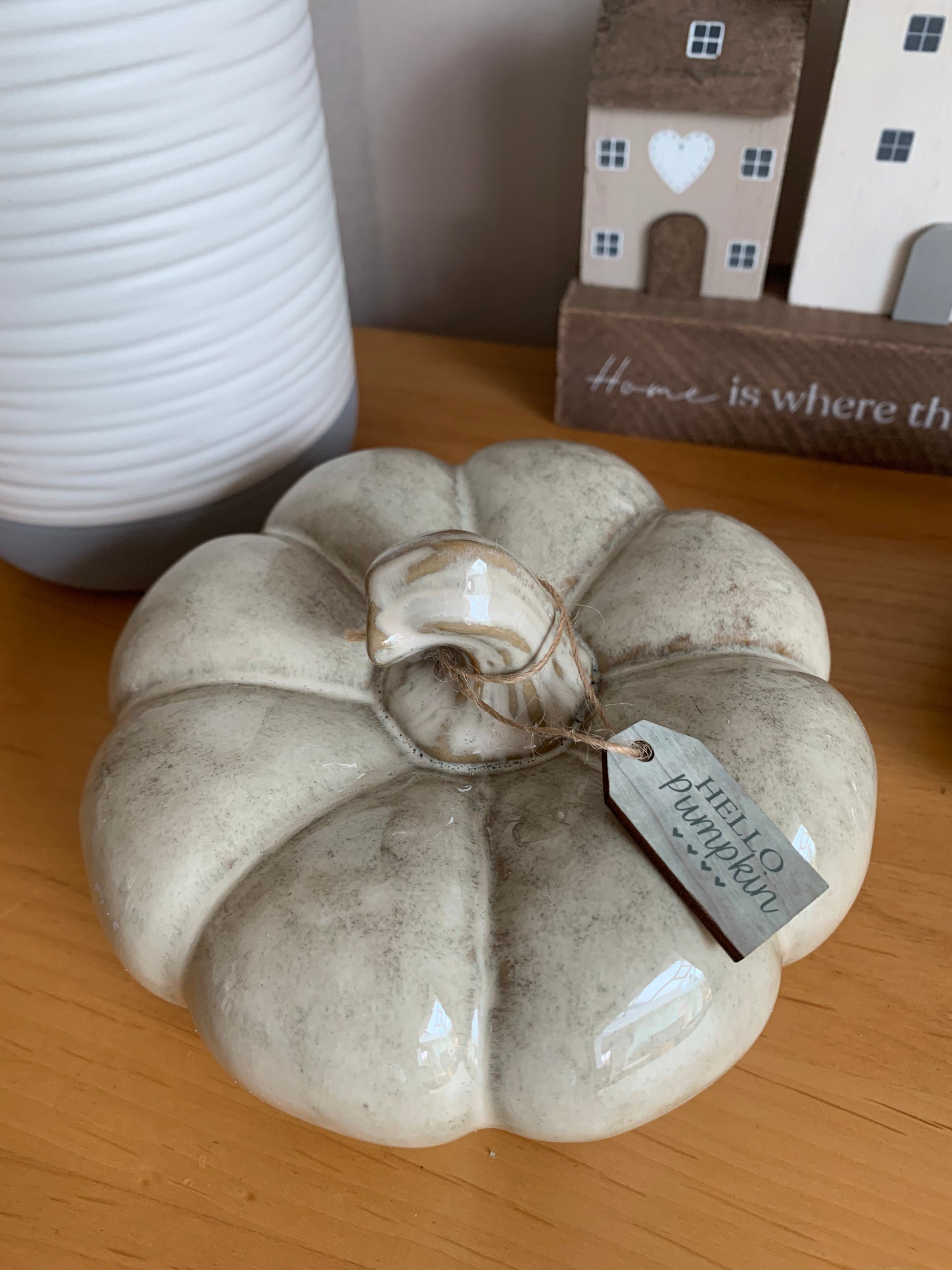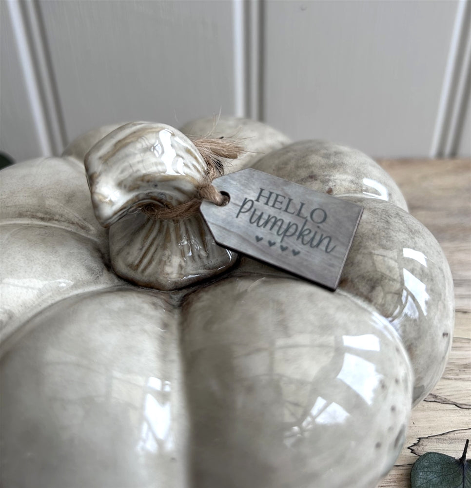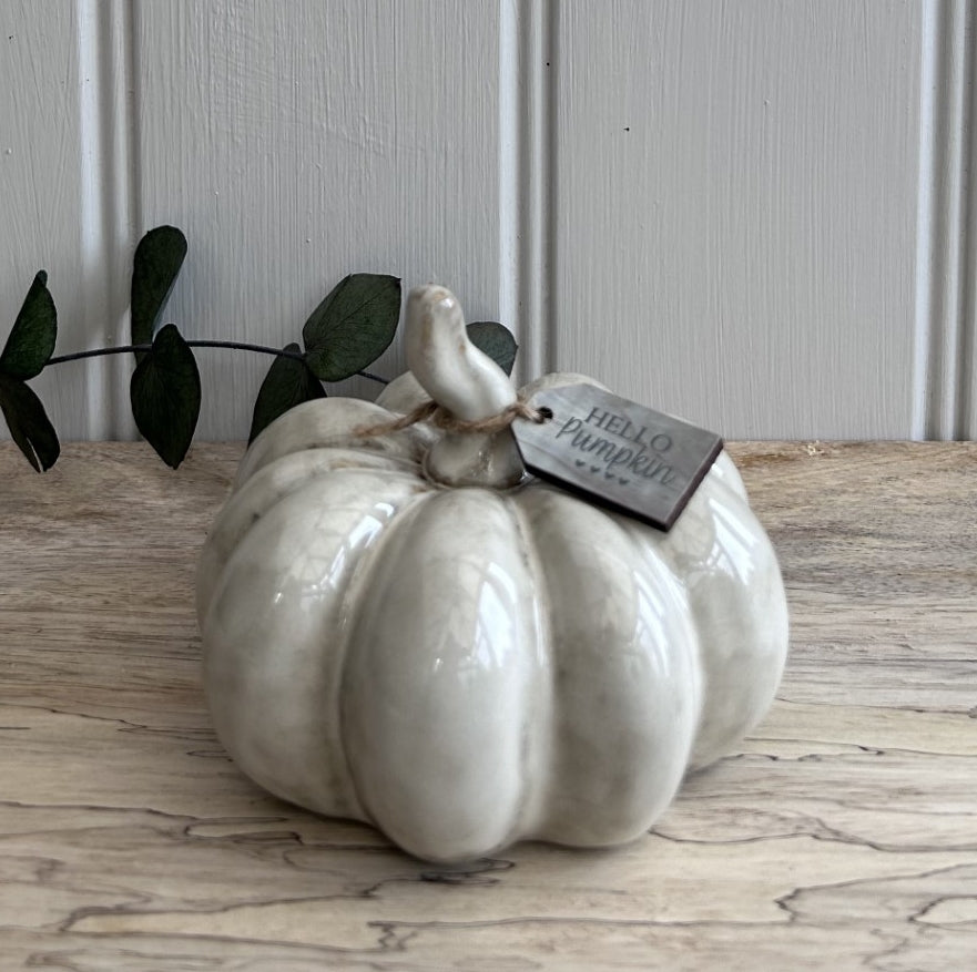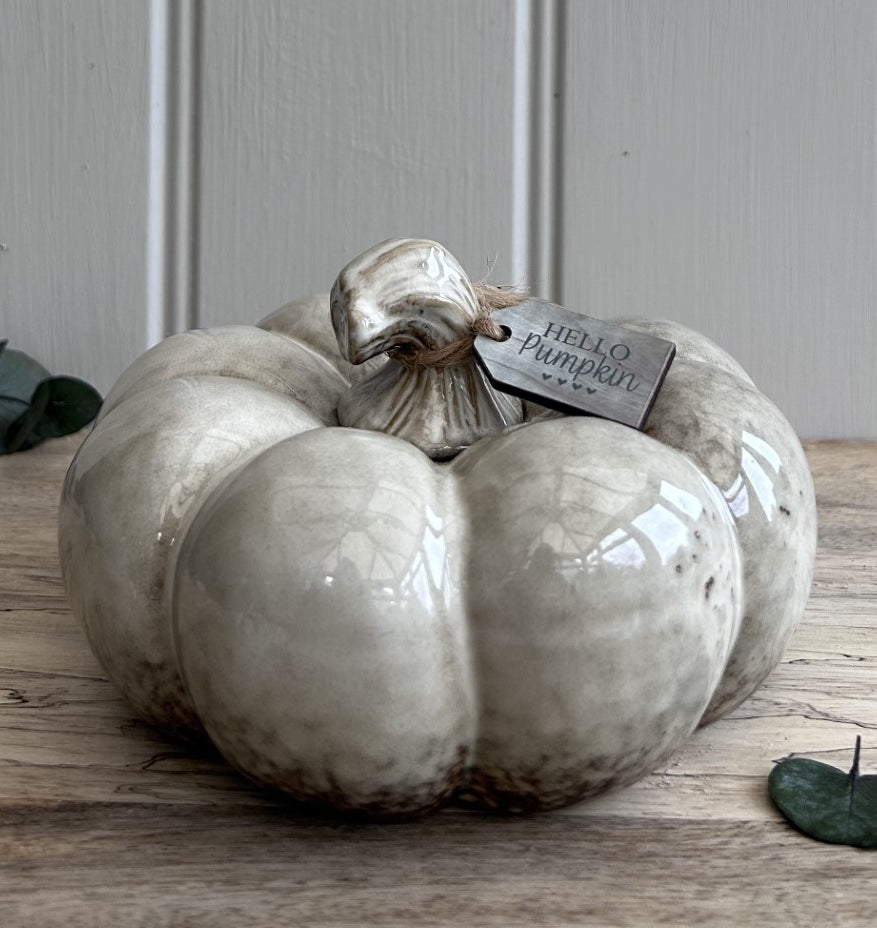 Natural ceramic pumpkin with a Reactive Glaze Finish.