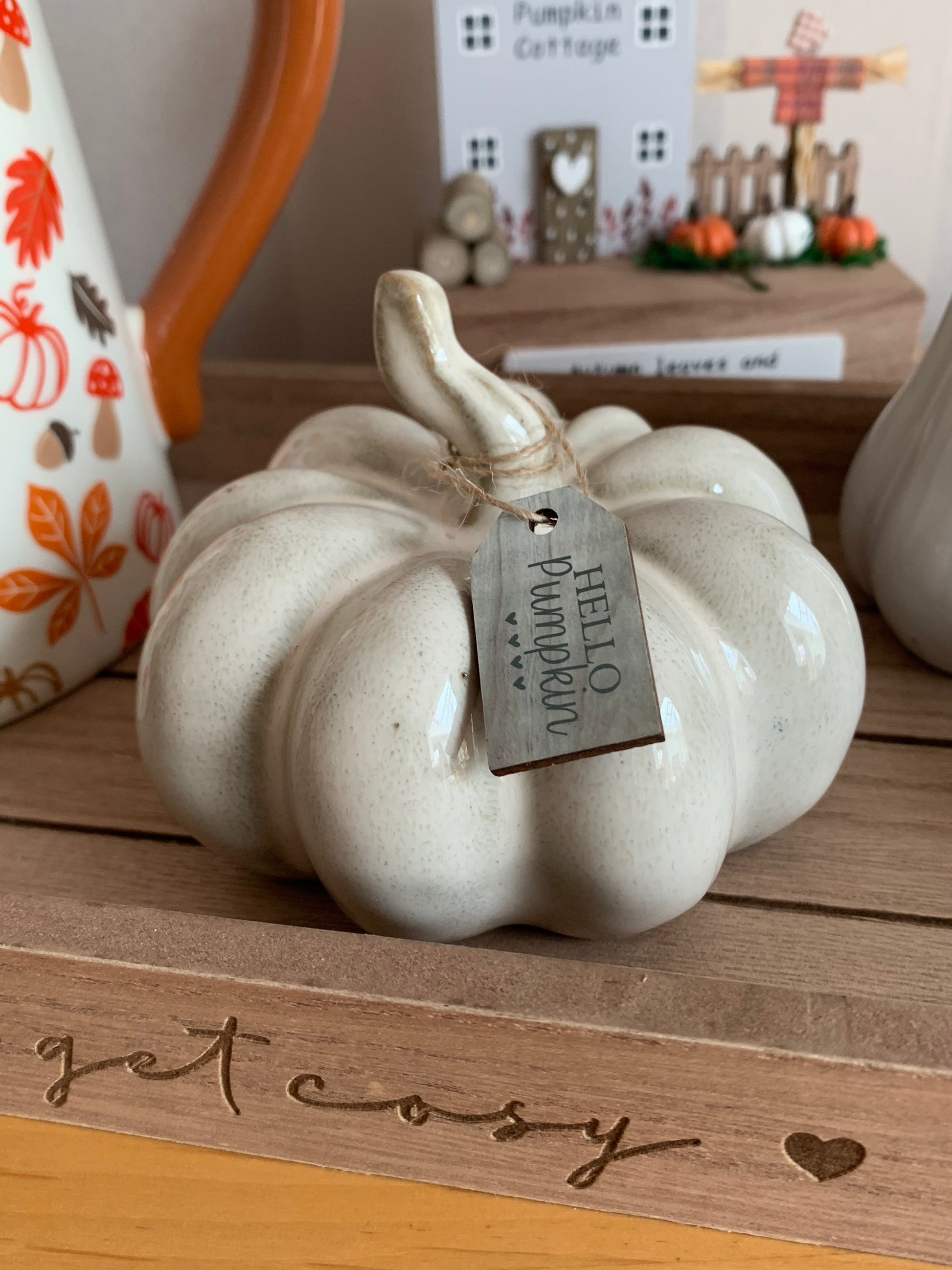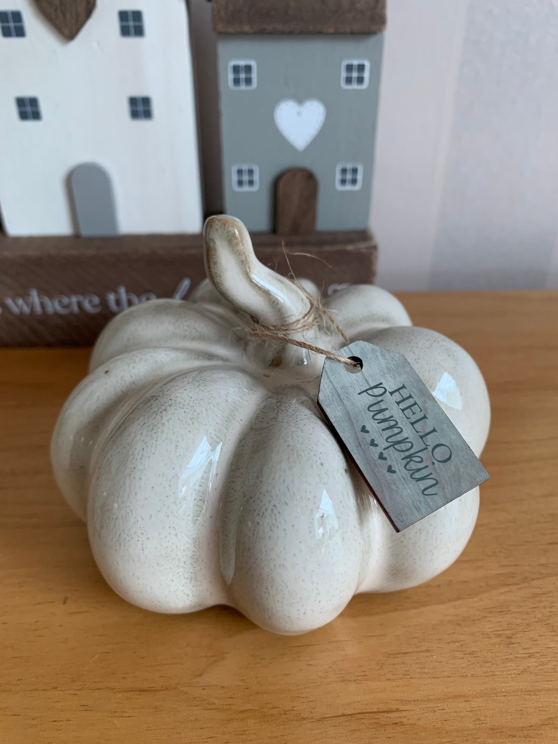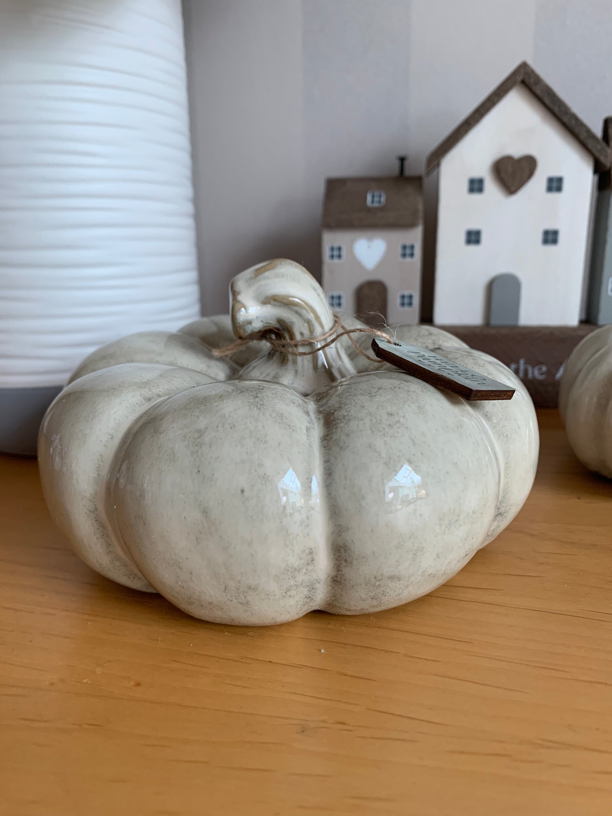 Natural ceramic pumpkin with a Reactive Glaze Finish.