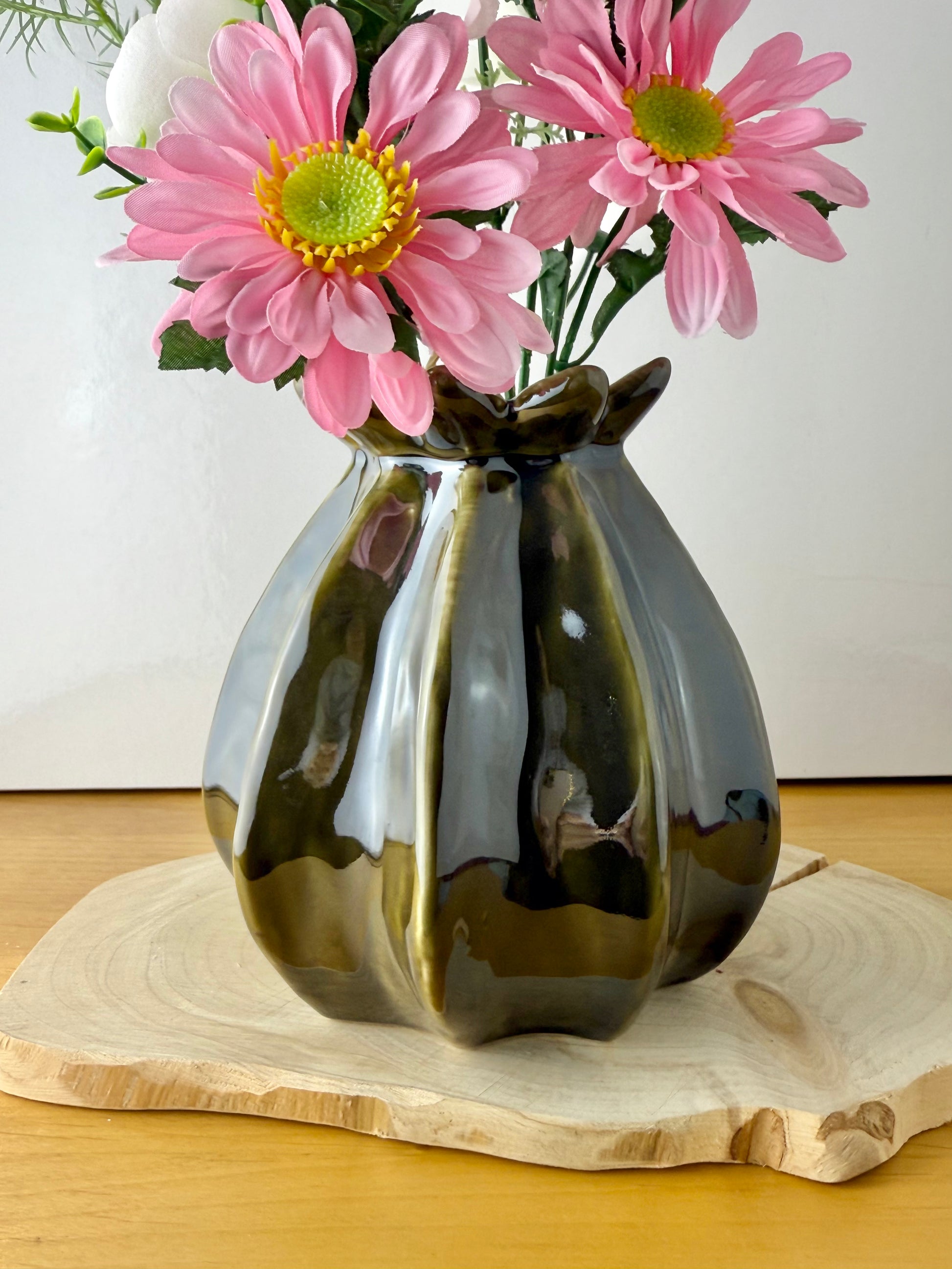 Featuring a poppy head design, it effortlessly complements fresh, dried, or artificial blooms.