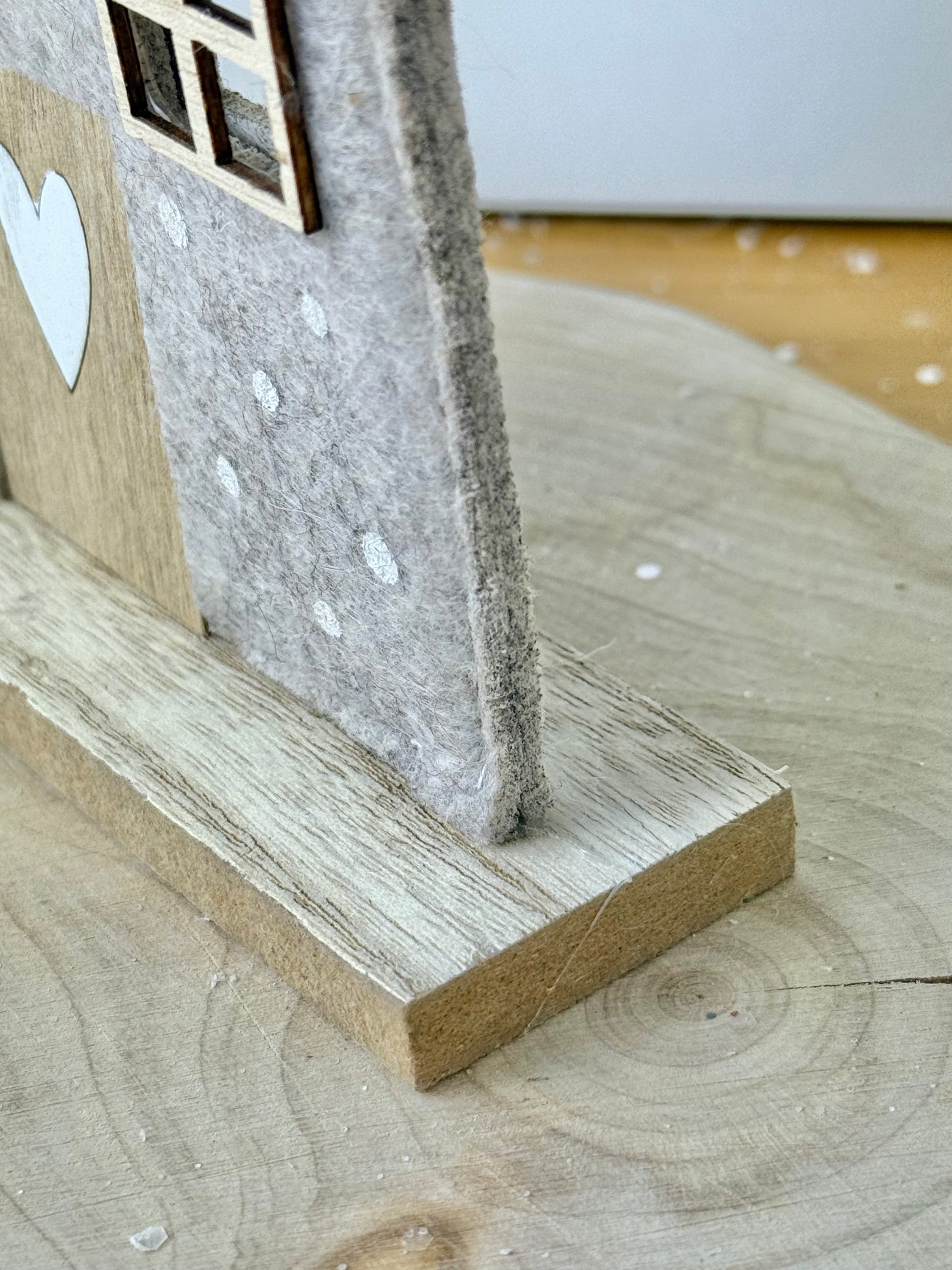 Introducing our delightful felt house, adorned with a heart and flower design, perfect for adding a touch of charm to your home.