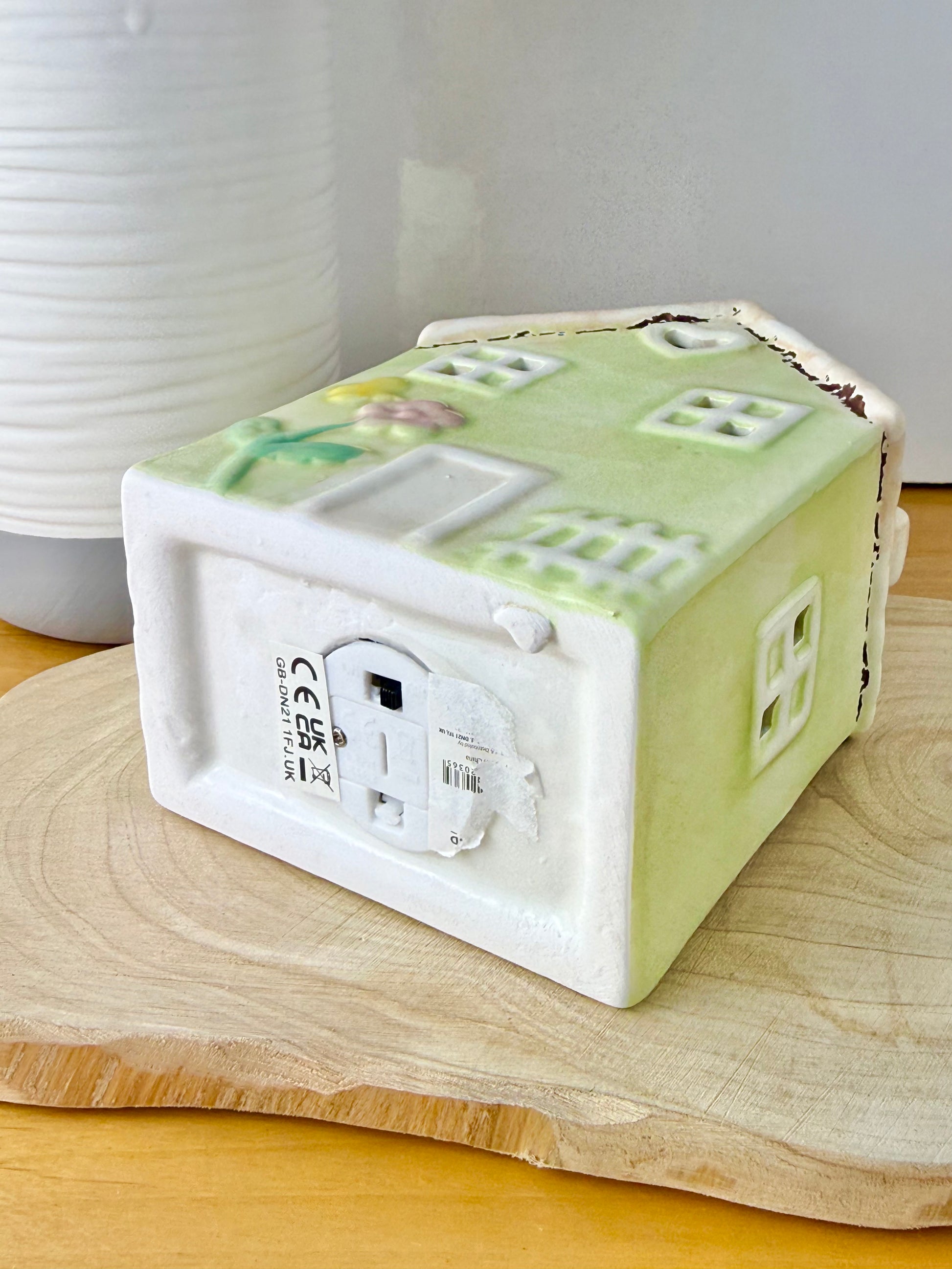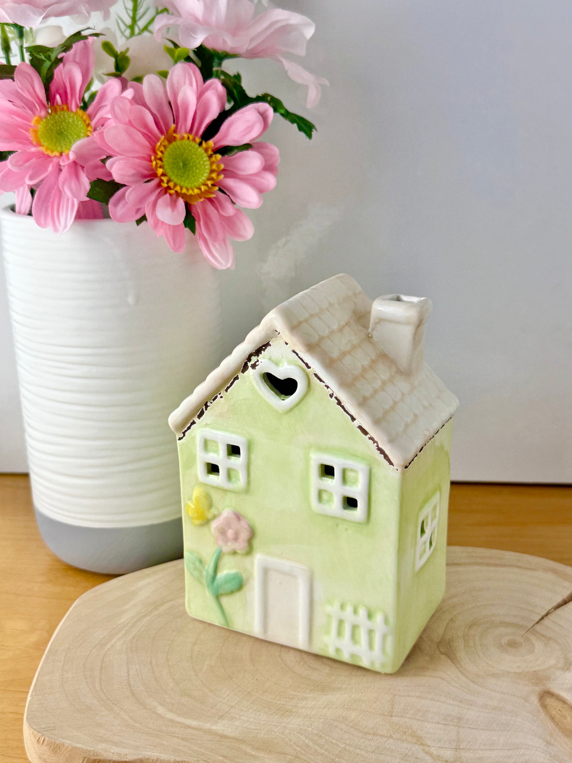 This pale turquoise ceramic light up house just shouts spring, decorated with spring flowers and a warm green hue, it adds a welcoming touch to any room.