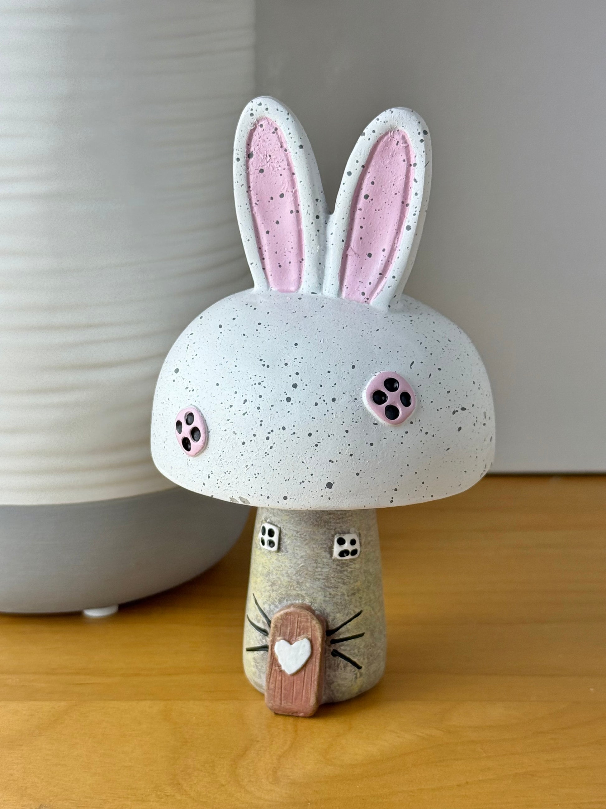 Elevate your table setting with a touch of playful charm using our delightful mushroom rabbit roof house ornament, adorned with intricate rabbit ears perched atop a quaint mushroom house, it adds a whimsical touch to any room.