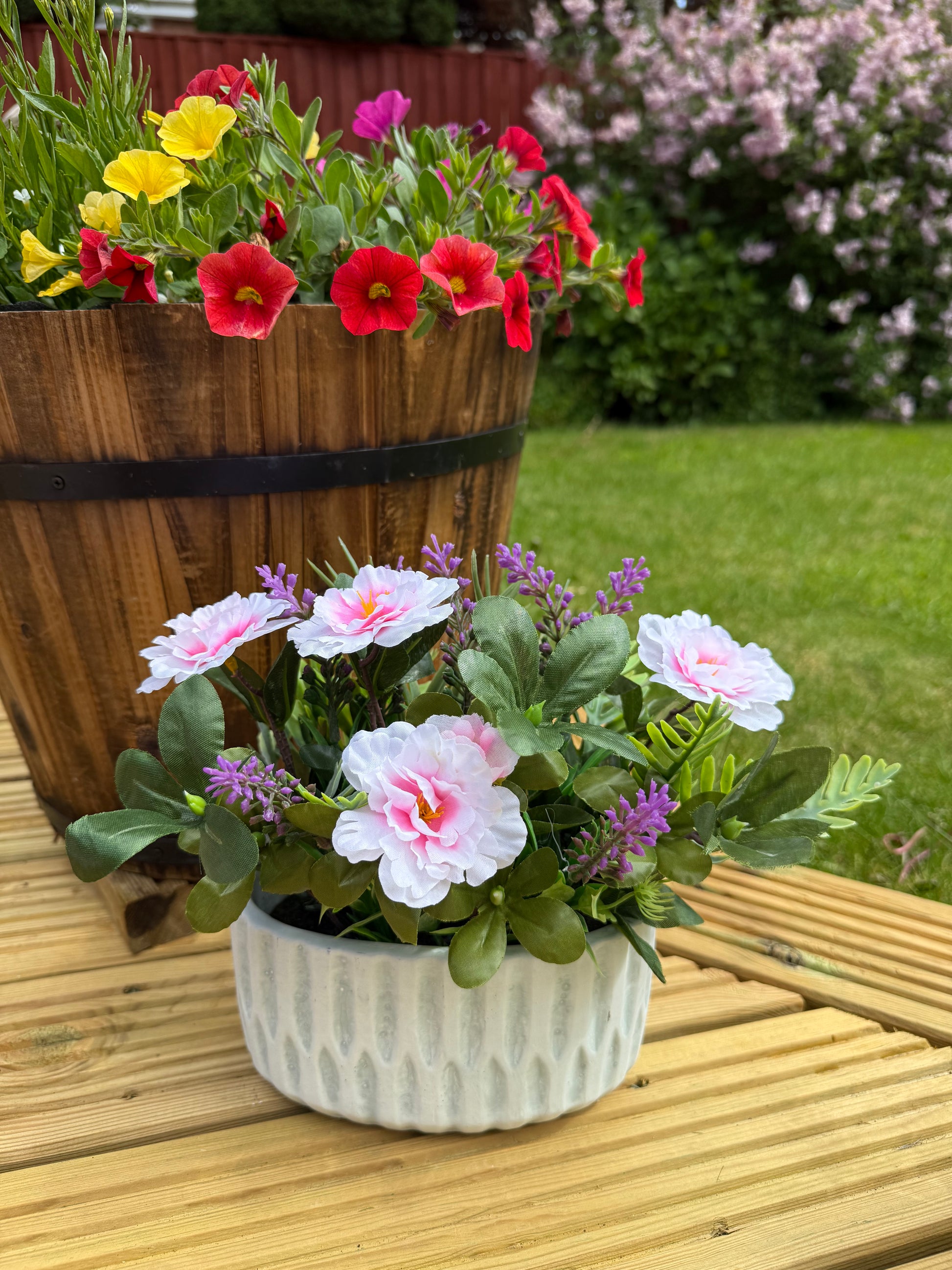 Pink Forever Flower & foiliage display within plant pot