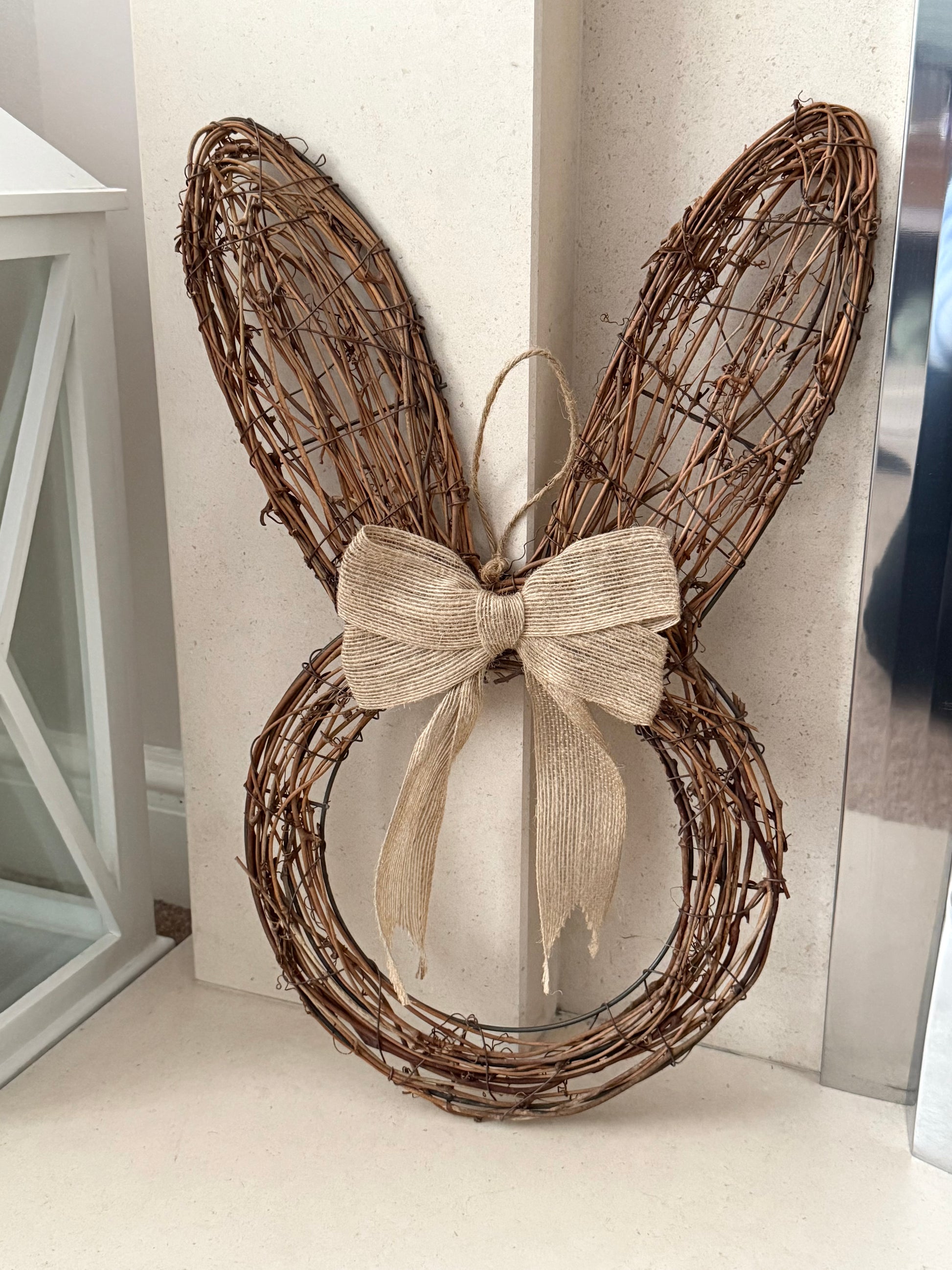 Celebrate the Easter season with this delightful rattan Rabbit hanging decoration. Add a touch of charm and playfulness to any room by hanging it on your wall or door.