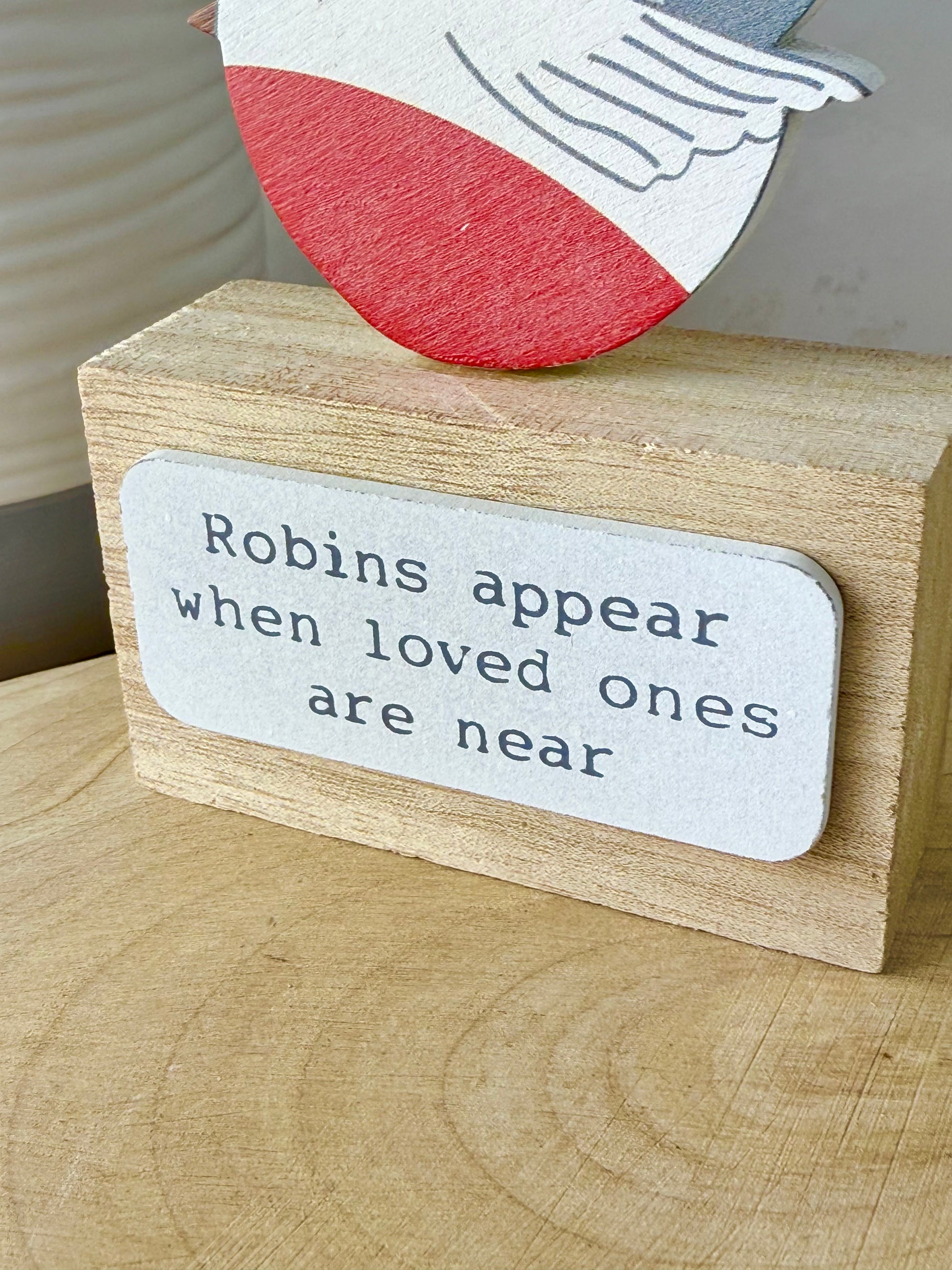 Robins appear wooden block sign