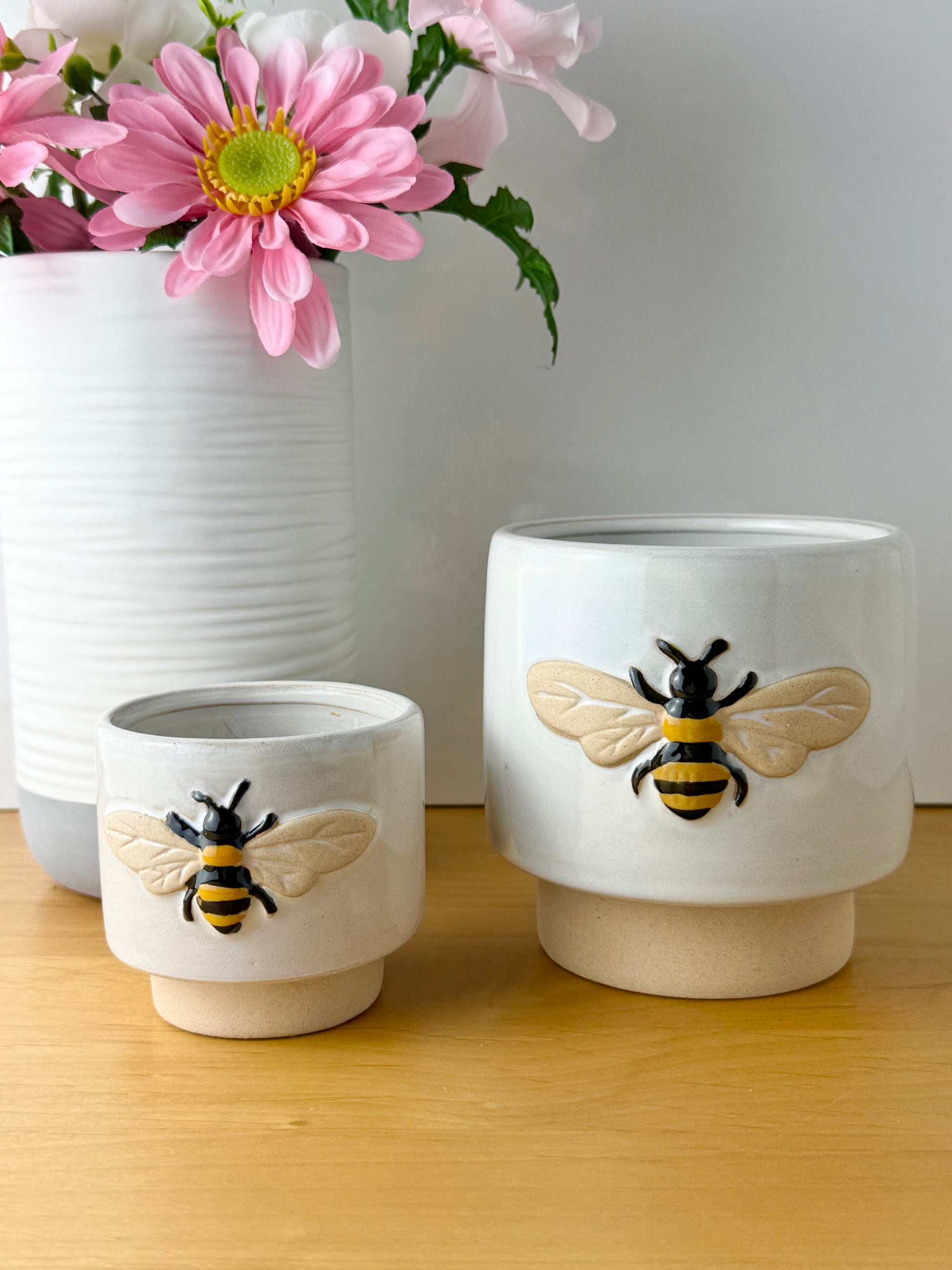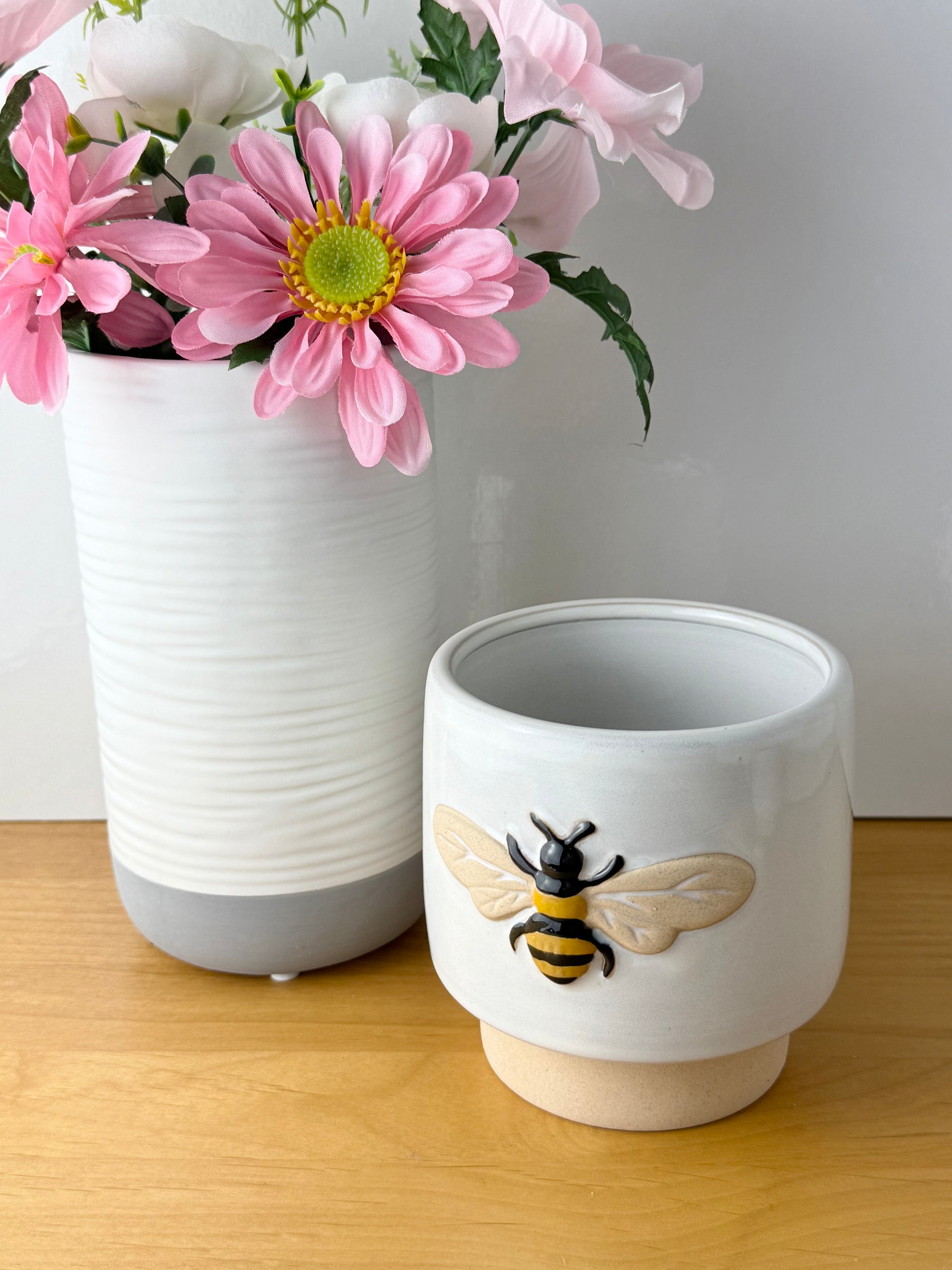 Present your favourite small plants in this charming country style planter featuring a beautiful embossed bee.