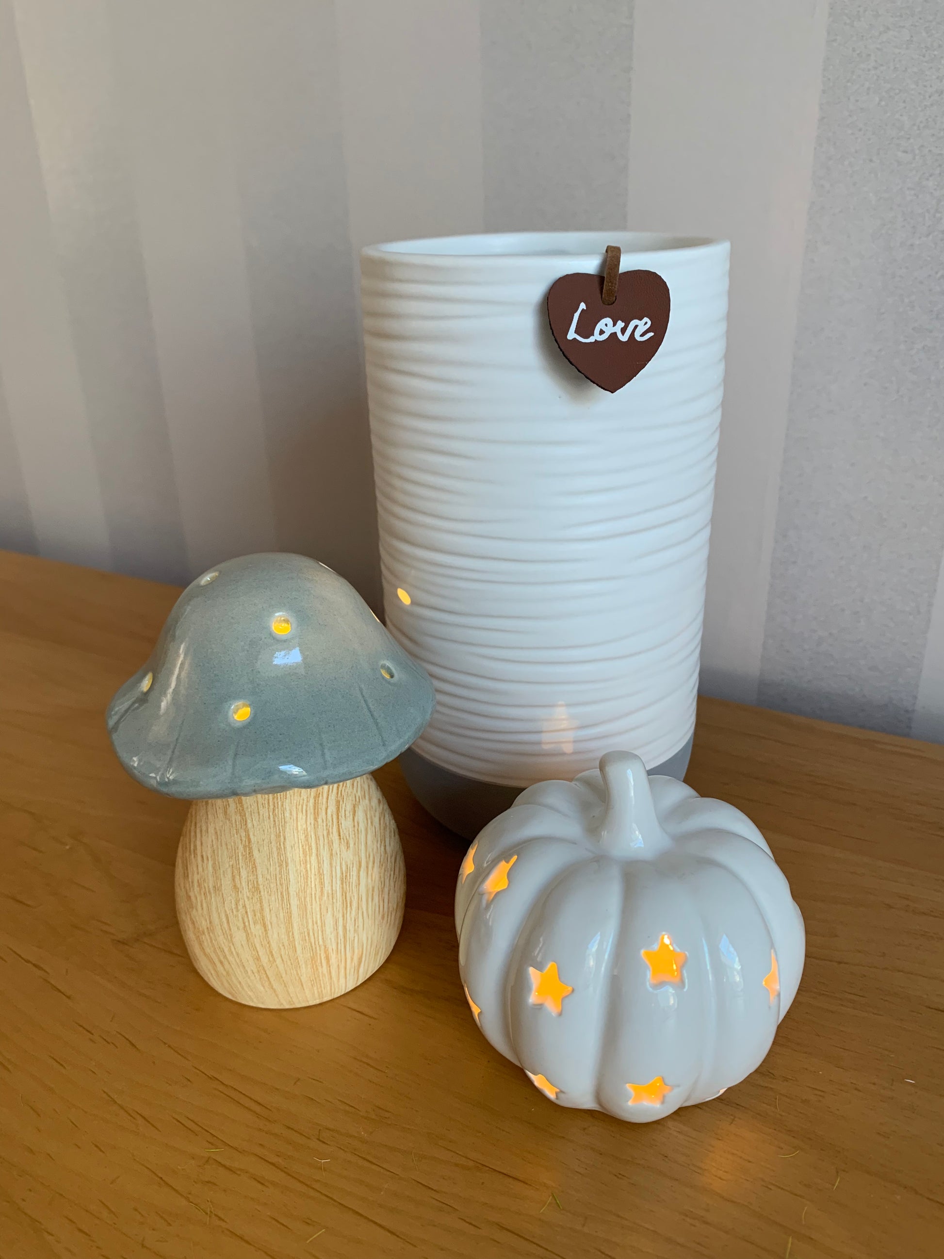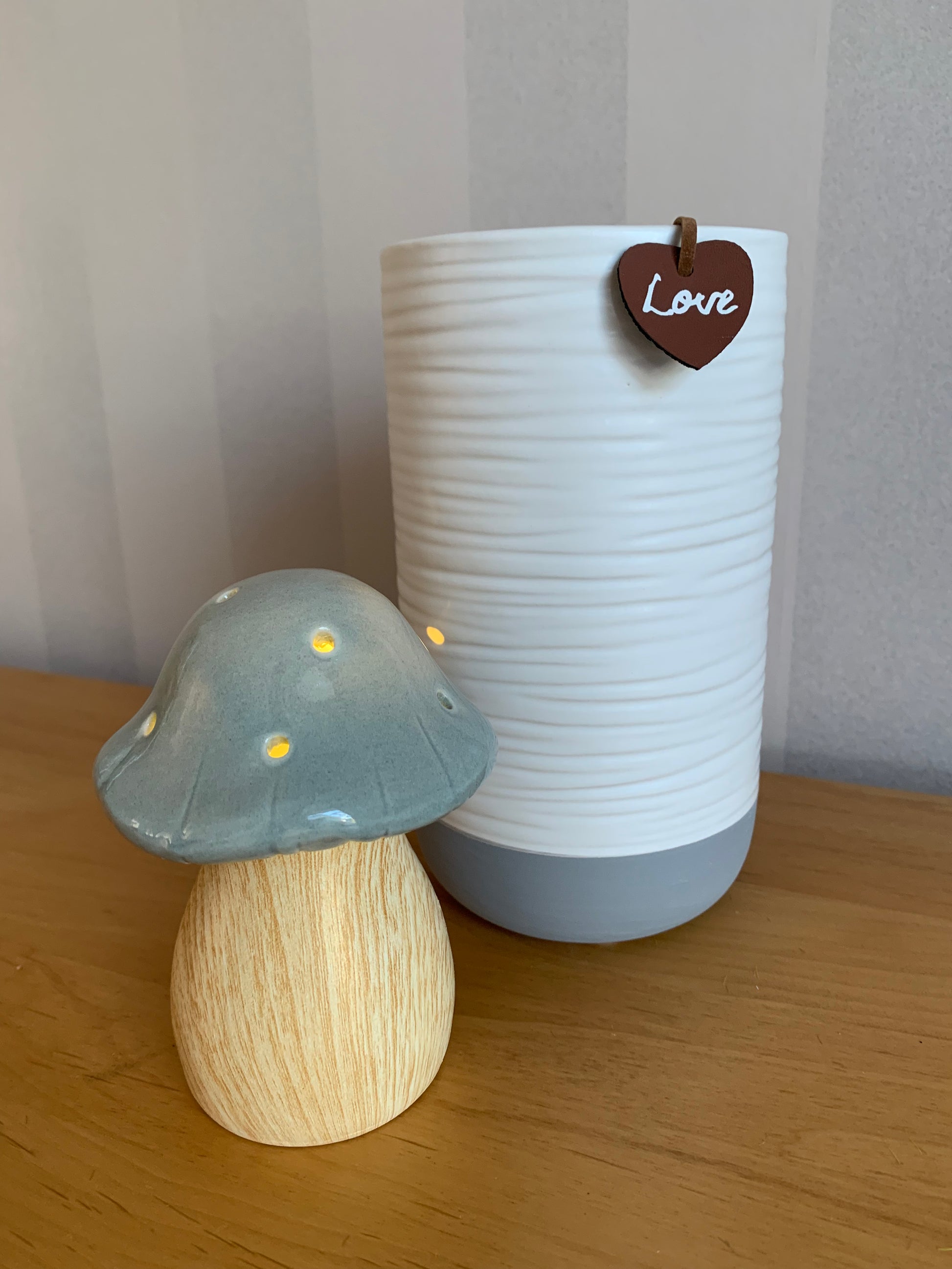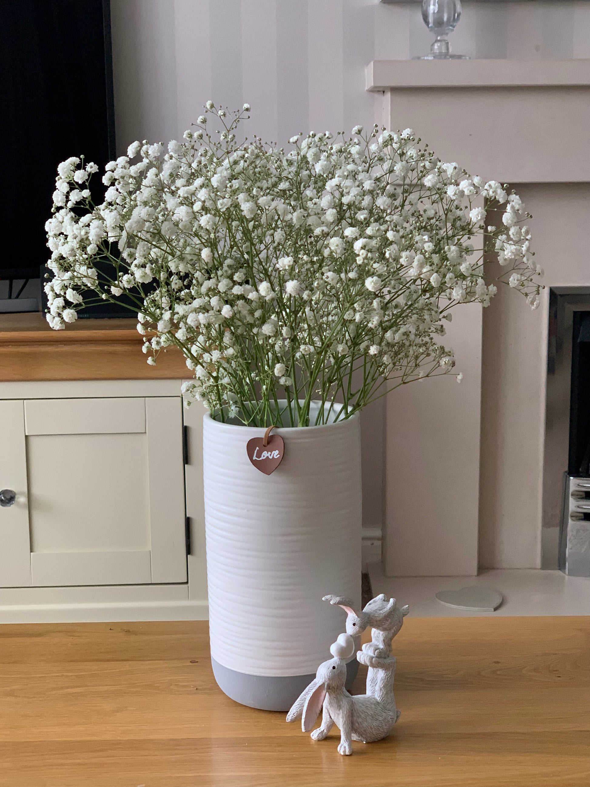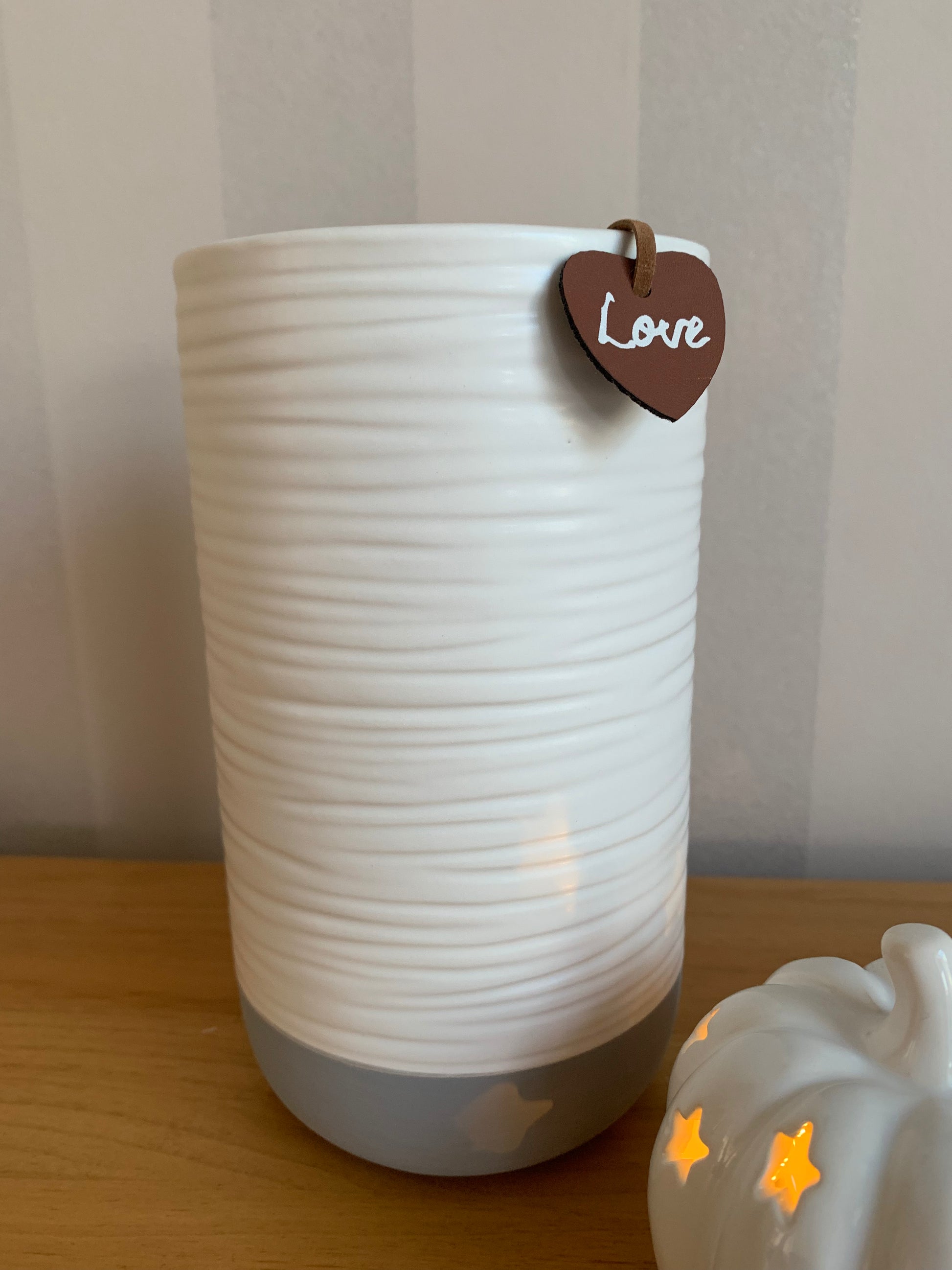 A stylish and contemporary white and grey vase with a textured surface finish.