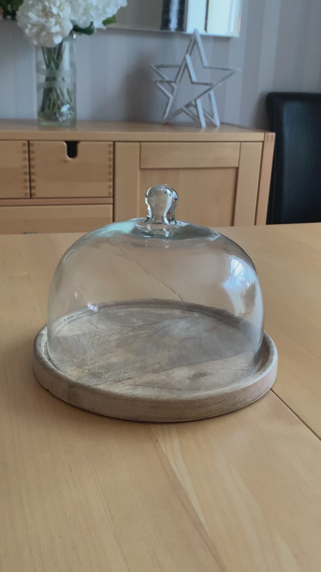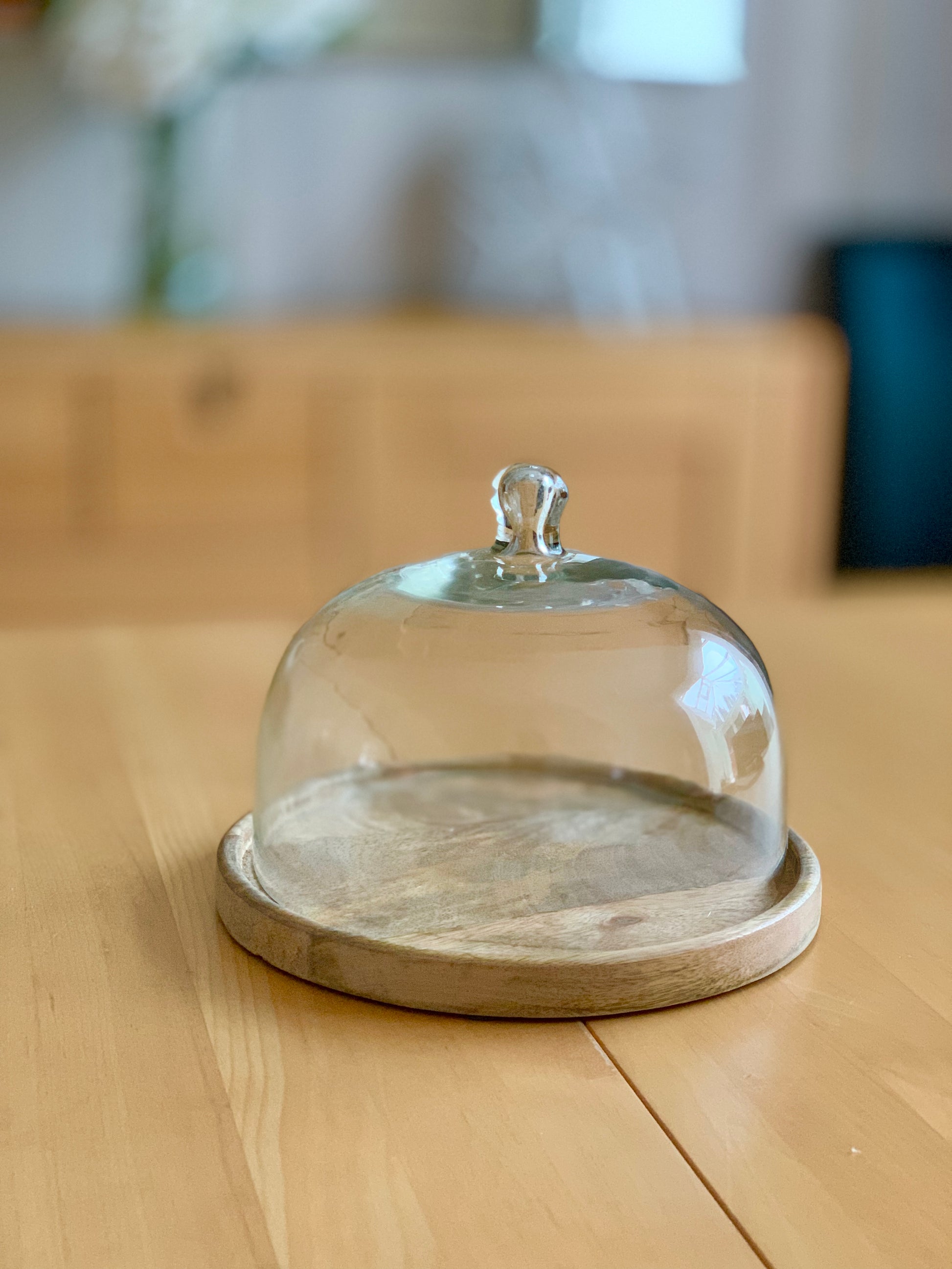 Wooden Tray with Glass Dome