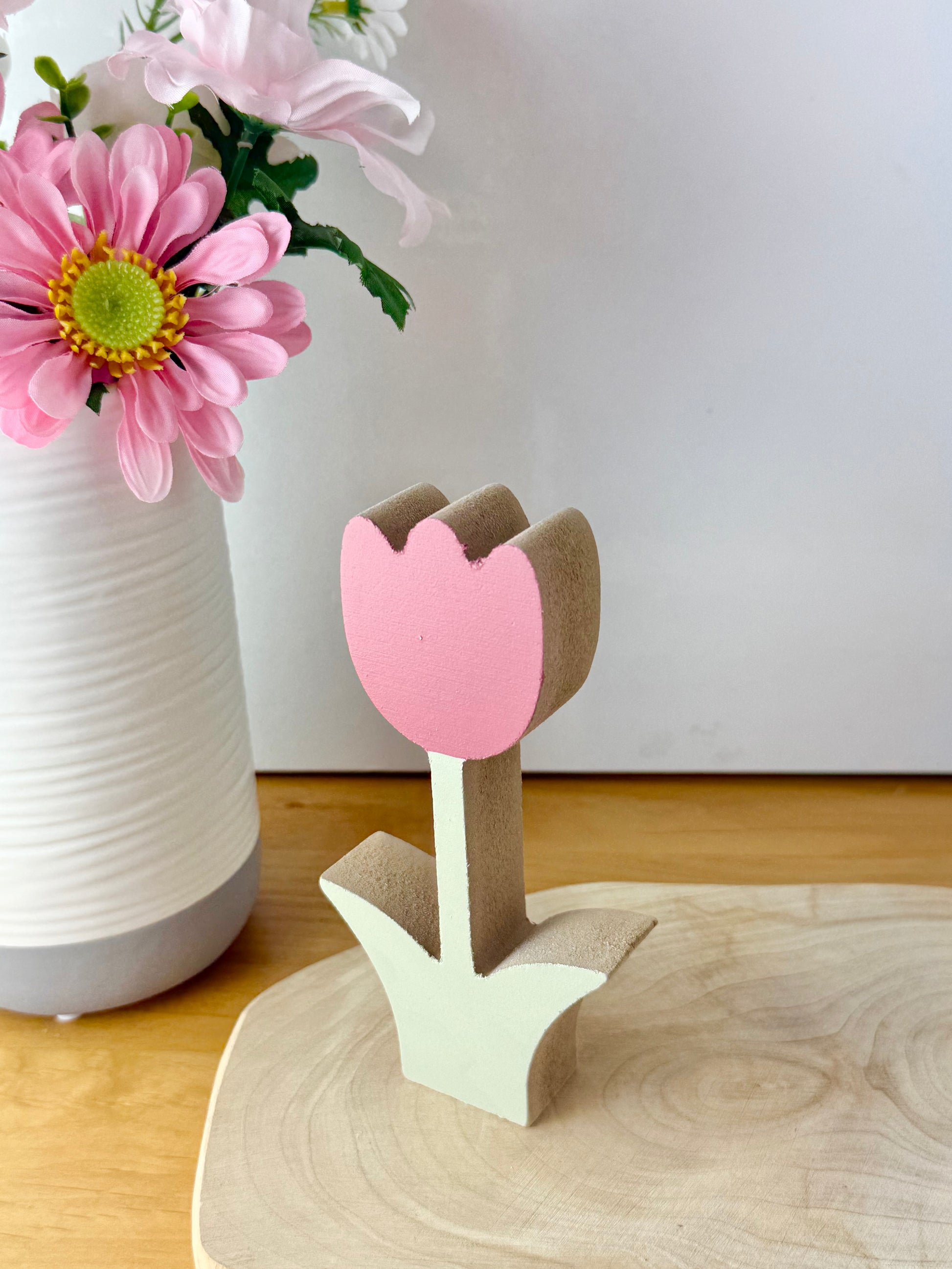 Set of 3 wooden tulip flowers - comes in 3 pastel colours