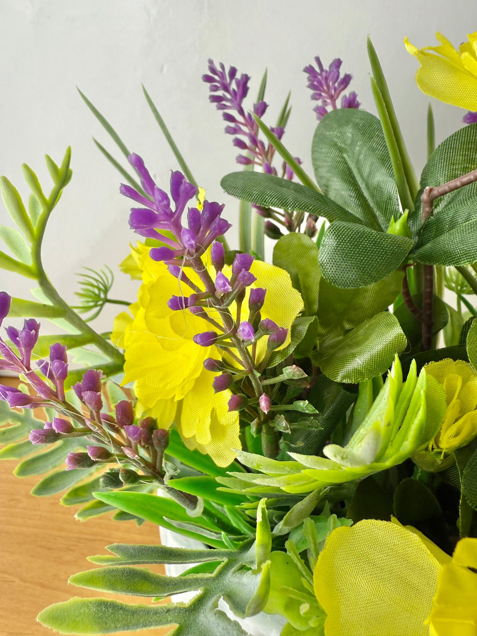 Yellow Forever flowers with a touch of purple & green foliage